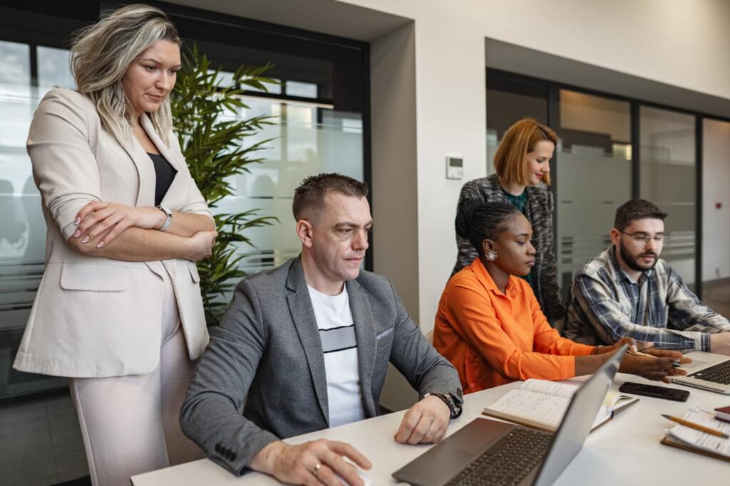 Team of diverse specialists review monthly cost and revenue elements